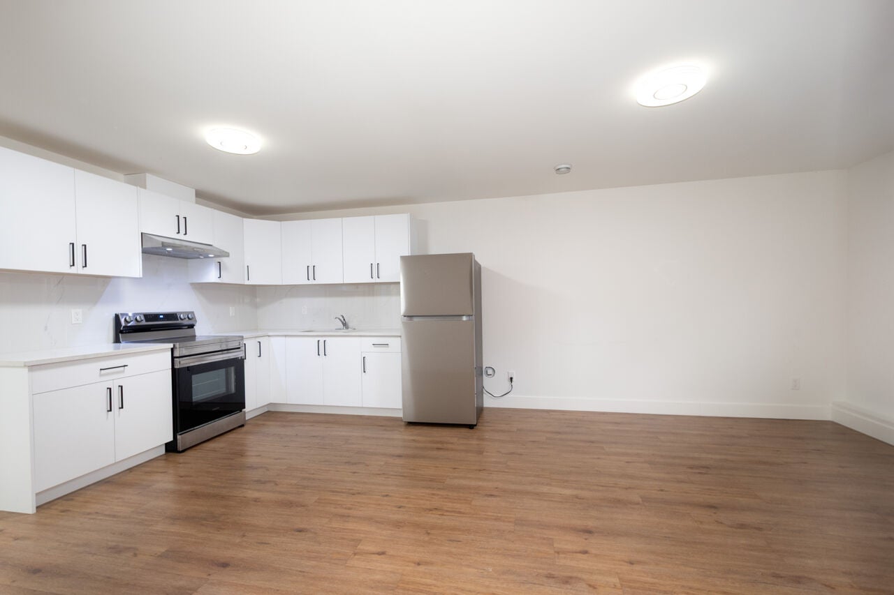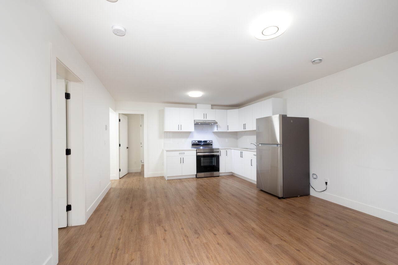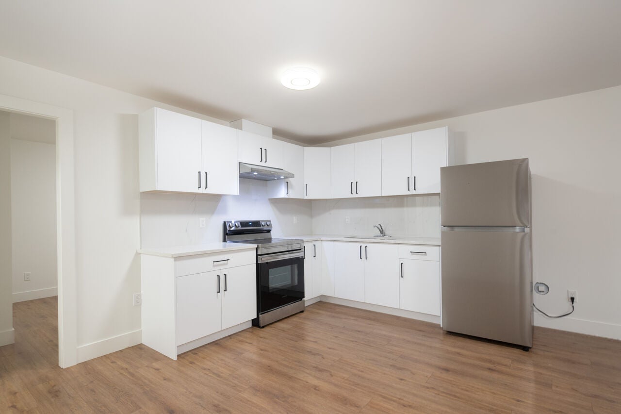 Spacious and bright 2 bed 1 bath suite in a brand new home right in Brookswood, Langley Township! The kitchen displays fresh white cabinets, enduring quartz countertops and stainless steel appliances. Unit has high ceilings, plenty of closet spaces and shared in-suite laundry. Spacious living area with an abundance of light. A great option for people who enjoy nature and outdoor activities. Close to George Preston Recreation Centre, Langley Figure Skating Club, schools, many parks, trails, and a 6 minute walk to transit.