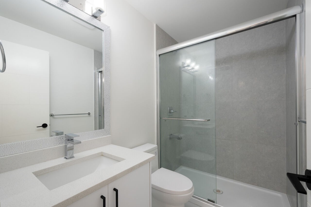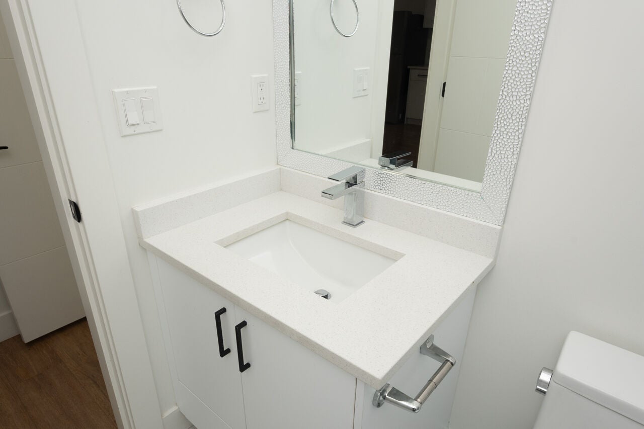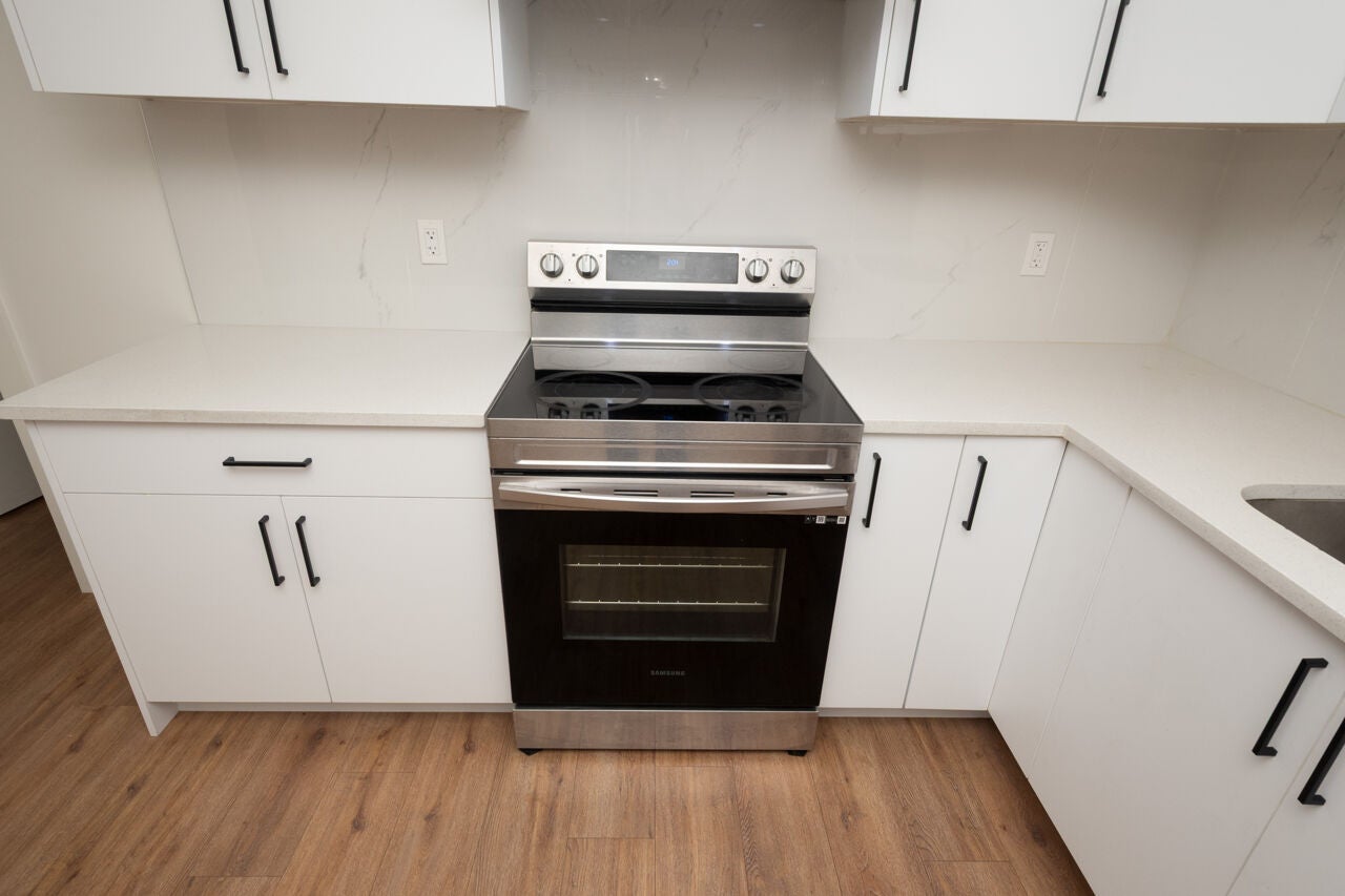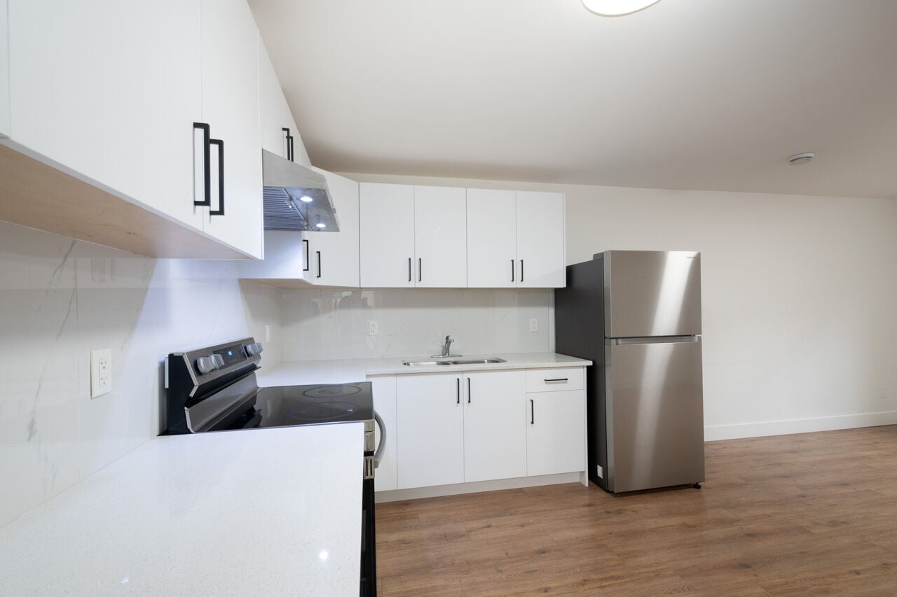 Spacious and bright 2 bed 1 bath suite in a brand new home right in Brookswood, Langley Township! The kitchen displays fresh white cabinets, enduring quartz countertops and stainless steel appliances. Unit has high ceilings, plenty of closet spaces and shared in-suite laundry. Spacious living area with an abundance of light. A great option for people who enjoy nature and outdoor activities. Close to George Preston Recreation Centre, Langley Figure Skating Club, schools, many parks, trails, and a 6 minute walk to transit.