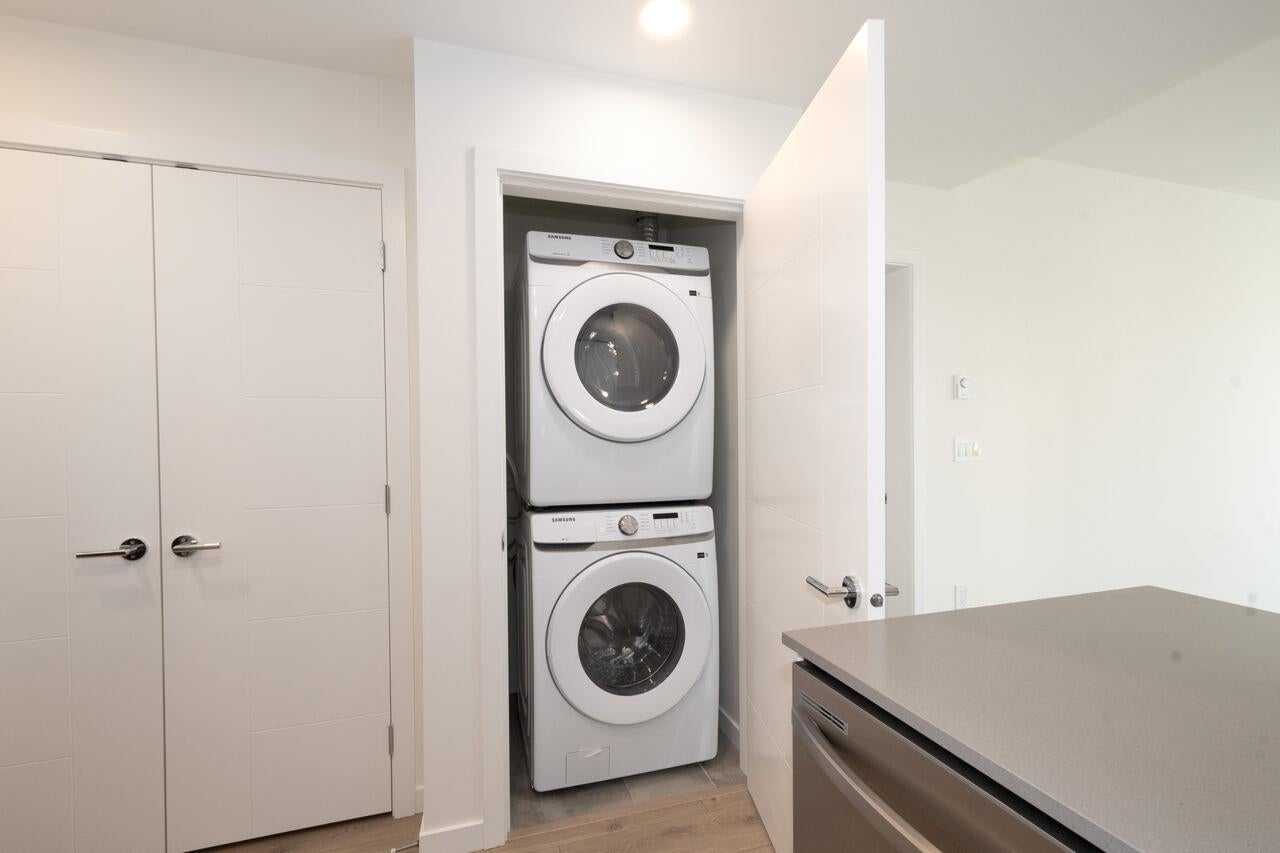 HIVE 2 - STAY CENTRAL, STAY SOCIAL. Spacious 2 bed, 2 bath well laid out plan featuring a gourmet kitchen with quartz counters & stainless steel Samsung appliances including gas range/oven, refrigerator & dishwasher. This home is fitted with sleek fixtures & thoughtful finishes. Generously sized primary bedroom with walk in closet & ensuite! Full size front loading washer & dryer. Enjoy having a gym, social room, meeting room, outdoor courtyard with bbqs & playground, EV parking, storage locker & bike storage locker. All of life’s conveniences at your doorstep: green space, boutiques, good eats, banks, supermarket and more! A network of beautifully landscaped pedestrian paths makes getting there on foot a cinch! Catchment: WIlloughby Elementary, Yorkson Creek Middle & Mountain Secondary.